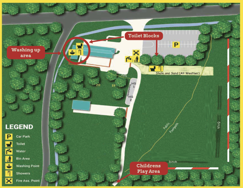 • Showers and loos on site; delicious food and drink in The Red Lion pub